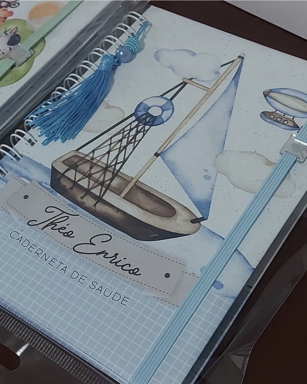 A parte interna das capas, folha de identificação e o bolsinho, são revestidos com película plástica, o que dá durabilidade ao produto, podendo ser higienizdas com pano úmido.